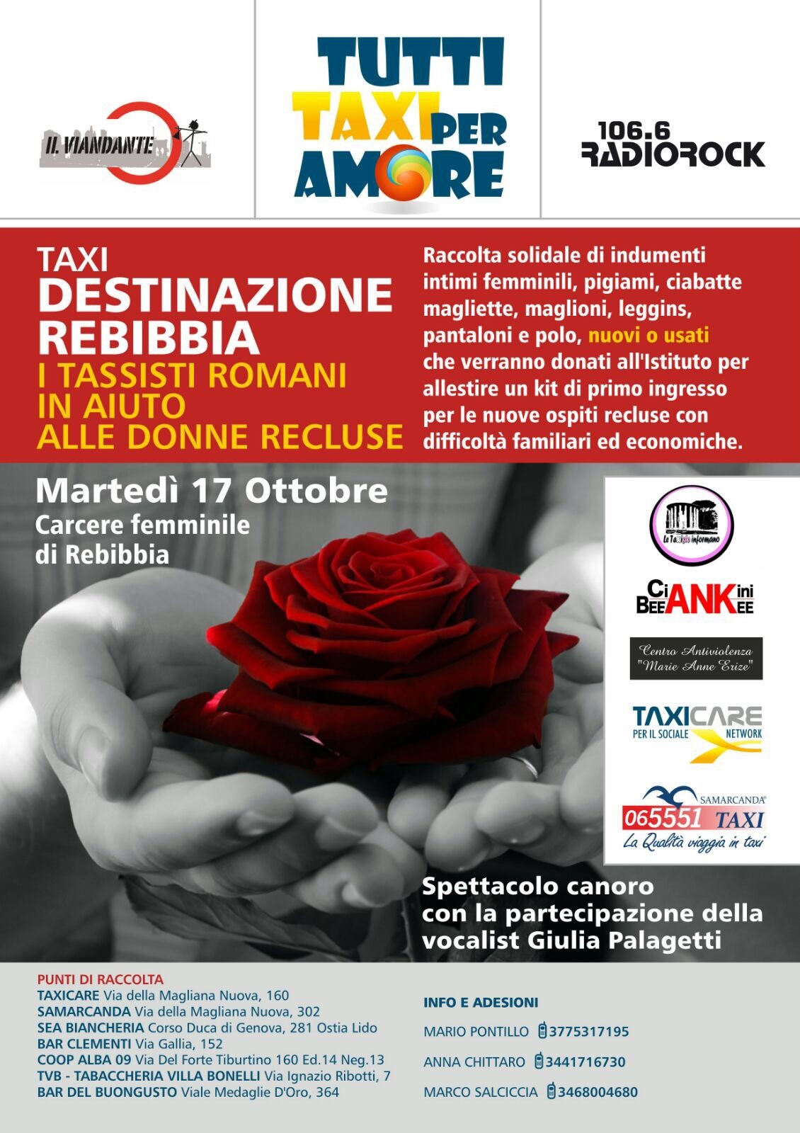 La seconda fase del progetto è stata pensata e organizzata in occasione dell’8 marzo con una raccolta attiva da qualche giorno. «Nel Teatro della Casa Circondariale – spiegano le tassiste sui social in un post intitolato “Senza colpa” – l’8 marzo si terrà uno spettacolo a beneficio di alcune ospiti grazie all'associazione Il Viandante, organizzatrice dell’evento. Parteciperanno, tra gli altri, gli attori Mirko Frezza e Francesca Romana Cerri, il gruppo musicale “Presi per Caso”, l’artista Alan Bianchi, Betta Cianchini di Radio Rock e Valeria Vivarelli dell’Osservatorio internazionale per la Salute».