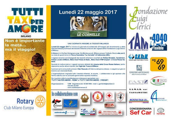 Lunedì 22 maggio 2017 si è rinnovata la giornata di solidarietà all'insegna del divertimento e della spensieratezza promossa dai tassisti milanesi a favore dei ragazzi della Fondazione Luigi Clerici di Milano.